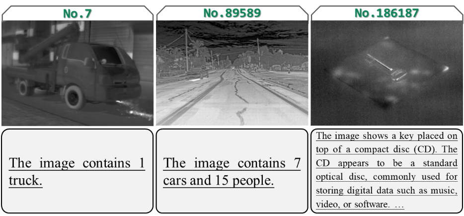 在多模态人工智能领域,视觉语言大模型(Vision-Language Models, VLMs)已在可见光图像理解中取得显著突破。然而,红外图像作为在夜视导航、安全监控、无人系统感知等场景中广泛应用的重要视觉模态,却长期缺乏与文本语义配对的大规模数据集,使得现有多模态大模型在红外图像上常出现“幻觉”与误判,难以正确理解真实红外场景中的语义信息。针对这一国际难题,研究团队提出了首个面向真实红外图像的多模态大模型 IRGPT(InfraRed GPT),并构建了全球首个大规模真实红外–文本配对数据集 IR-TD(InfraRed-Text Dataset)。