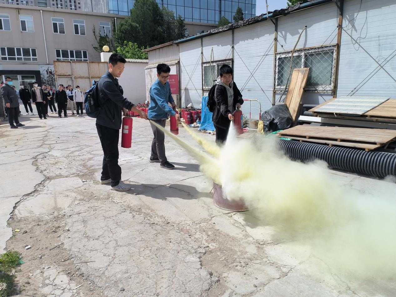 随后,在消防演习现场,校保卫部消防安全室王乐老师对干粉灭火器的使用方法做出示范,并指导学生正确操作干粉灭火器,模拟灭火过程,参加活动的每一位同学都实际操作了干粉灭火器。