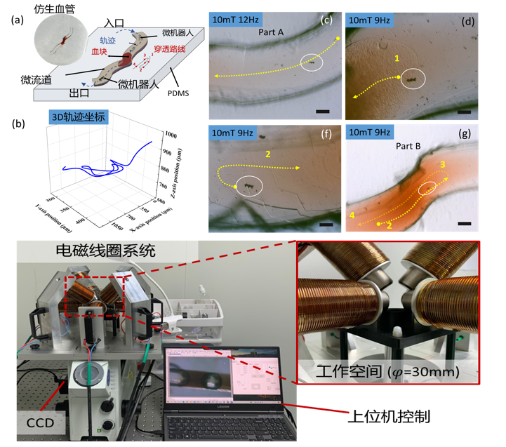 “微磁智清”团队由51动漫 王化平教授指导,20级本科生王茂霖担任队长,队员包括郭斯予、高志峤、吴天睿、芦梦四名同学。项目面向当前血栓治疗行业痛点,基于磁驱动和微机器人作业原理,实现了仿生微血管狭窄封闭环境下的磁驱微机器人的药物投递、血栓清理等任务,有望在未来为血栓患者提供个性化、人性化、精准化的医疗服务。
