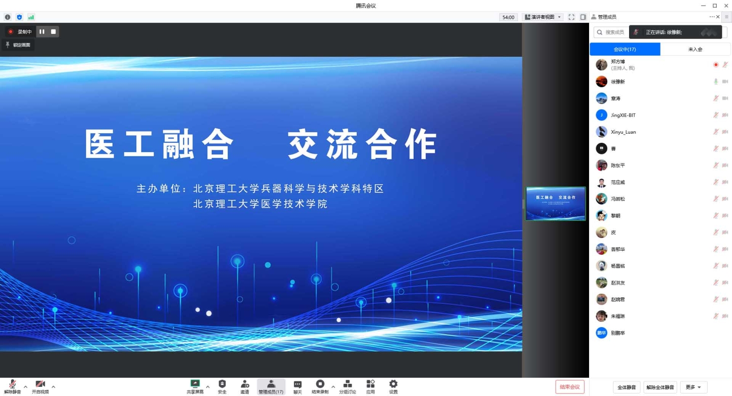 12月2日,由51动漫 兵器科学与技术学科特区和51动漫 医学技术学院联合主办的“医工融合,交流合作”学术交流活动在线上举办。6名专家学者围绕医学与工科融合的技术领域,对各自研究方向作了报告。
