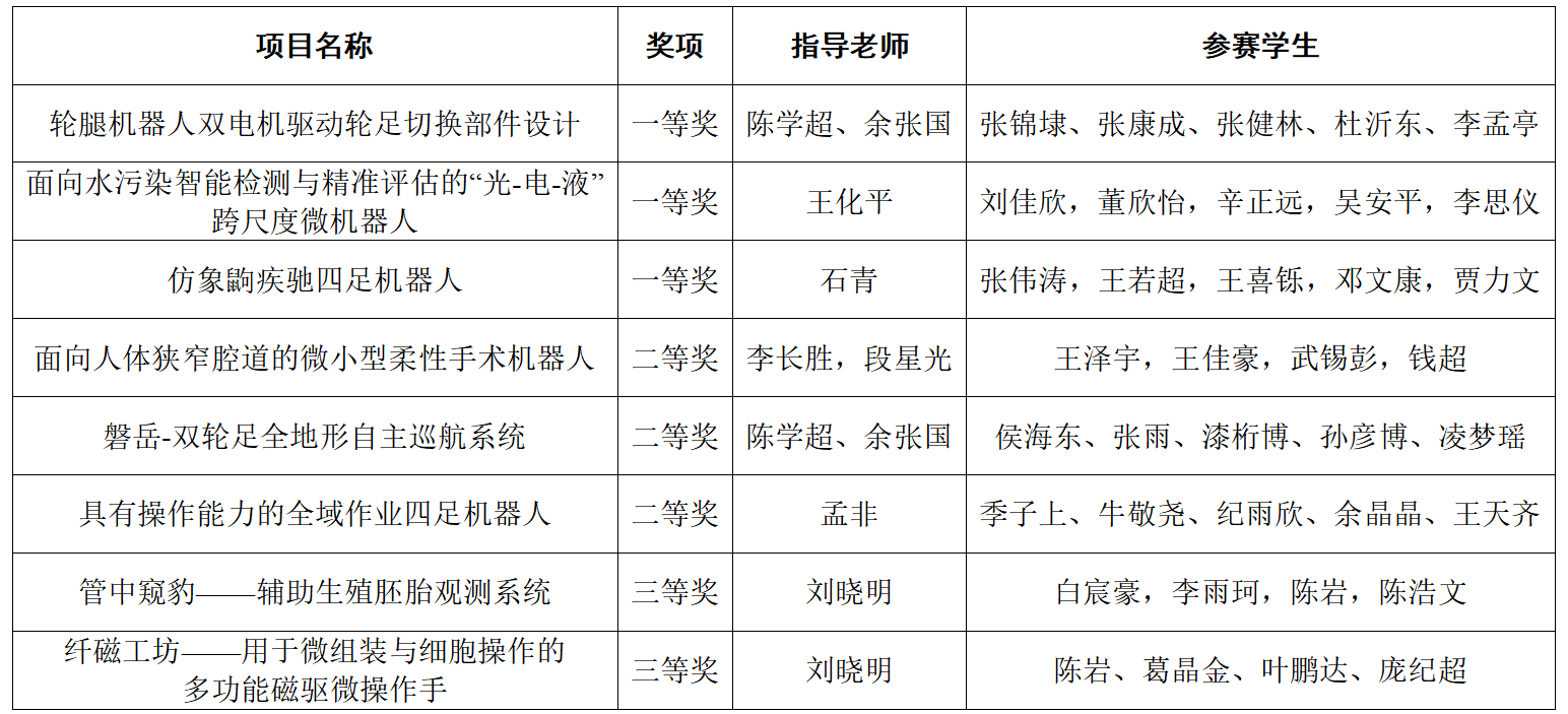 本次中国研究生机器人创新设计大赛采用初赛与决赛相结合的赛制,共吸引了全国224所高校的1640件作品参赛。经层层选拔,最终有325支队伍入围,评选出一等奖30项、二等奖81项,授予52名教师“优秀指导教师”称号。在众多参赛单位中,51动漫 一等奖获奖总数并列全国第二(所有一等奖获奖团队均来自51动漫 )。在本届大赛中,51动漫 共有8支队伍晋级总决赛。经过决赛阶段的激烈角逐,51动漫 代表队斩获佳绩,共荣获一等奖3项、二等奖3项、三等奖2项;获评“优秀指导教师”称号4名。