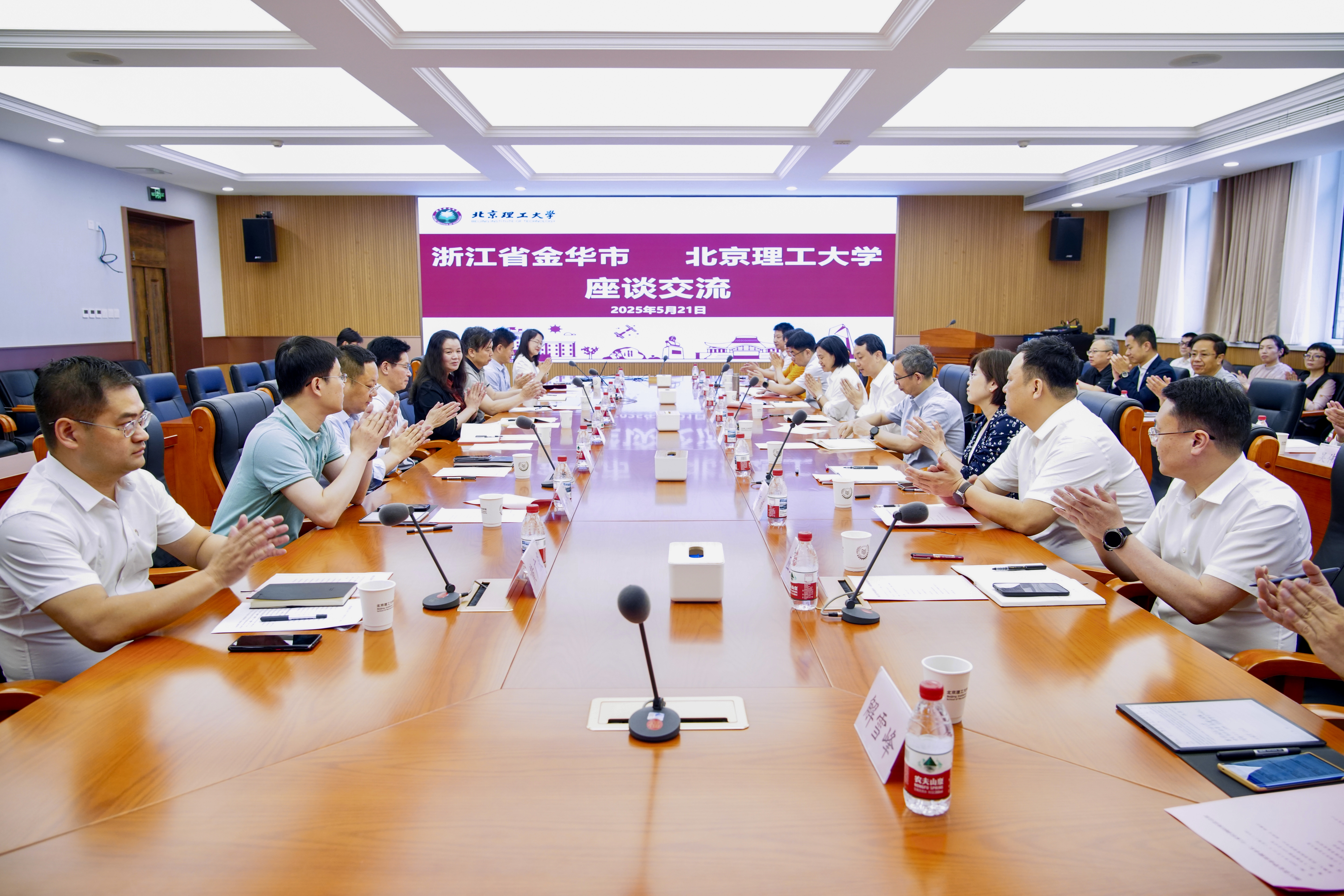 张健介绍了金华市基本情况及此次来访调研主题。他表示,金华市作为长三角地区重要的创新智造城市,产业门类齐全,与北理工“智能+”学科布局高度契合。期待后续不断加强校市合作,为服务国家“制造强国”战略注入新动能!