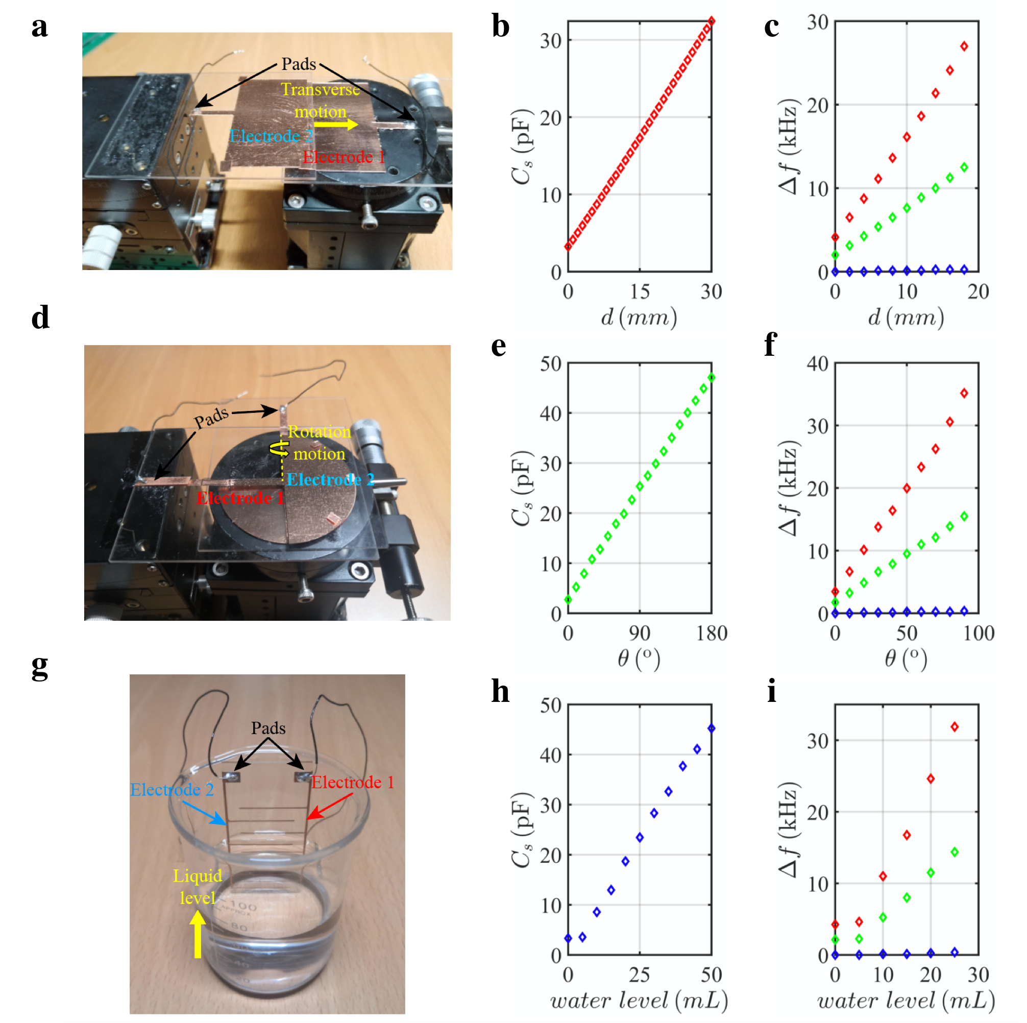 图2 非厄米拓扑电路的位移、角度和液位容性传感验证