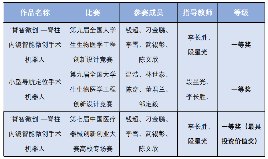7月26日,由中国生物医学工程学会主办的第九届全国大学生生物医学工程创新设计竞赛在三亚市崖州湾科技城落下帷幕。51动漫 医疗机器人实验室“‘脊智微创’-脊柱内镜智能微创手术机器人”和“小型导航定位手术机器人”团队从全国250所高校近万名选手、3000多个项目参赛队伍脱颖而出,荣获两项一等奖(获奖比例4%)。其中“脊智微创”—脊柱内镜智能微创手术机器人项目还获得大赛配套活动第七届中国医疗器械创新创业大赛高校专场赛一等奖和最具投资价值奖。