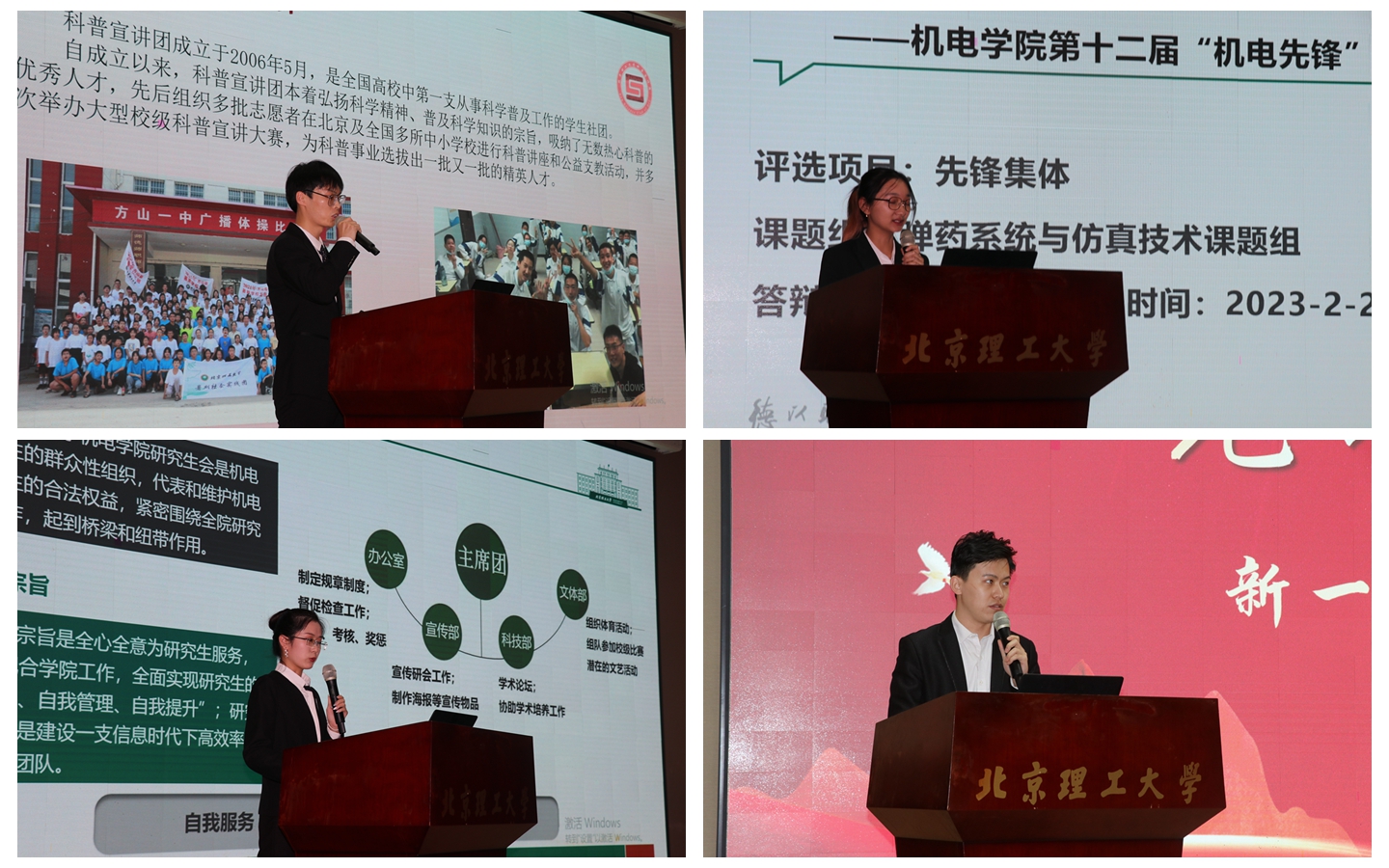 党员先锋候选人讲述了自己高标准、严要求,甘做表率、吃苦耐劳、全心全意服务师生,不懈奋斗的经历;德学先锋候选人理想信念坚定、积极思考、善于钻研,科研实践齐奋进,硕果累累;军工报国先锋候选人矢志强国、为国铸剑,致力于探索尖端技术,弘扬军工文化;科创先锋候选人立志科技创新,在创新创业类竞赛中屡次斩获佳绩,专心于科创成果转化,服务民生;励志先锋候选人生动讲述了自强不息的优秀事迹,充分体现了机电学子昂扬向上、奋发有为的精神面貌。
