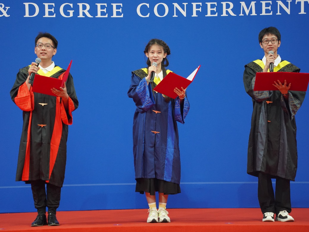 张伟涛、郭晓雯、王霆威作为本、硕、博各培养层次的毕业生代表发言,在感谢学院培养的同时,号召全体2024届毕业生践行“请党放心,强国有我”的青春誓言,表达了毕业生不负学院培养,练就卓越本领,永葆奋斗激情的决心。