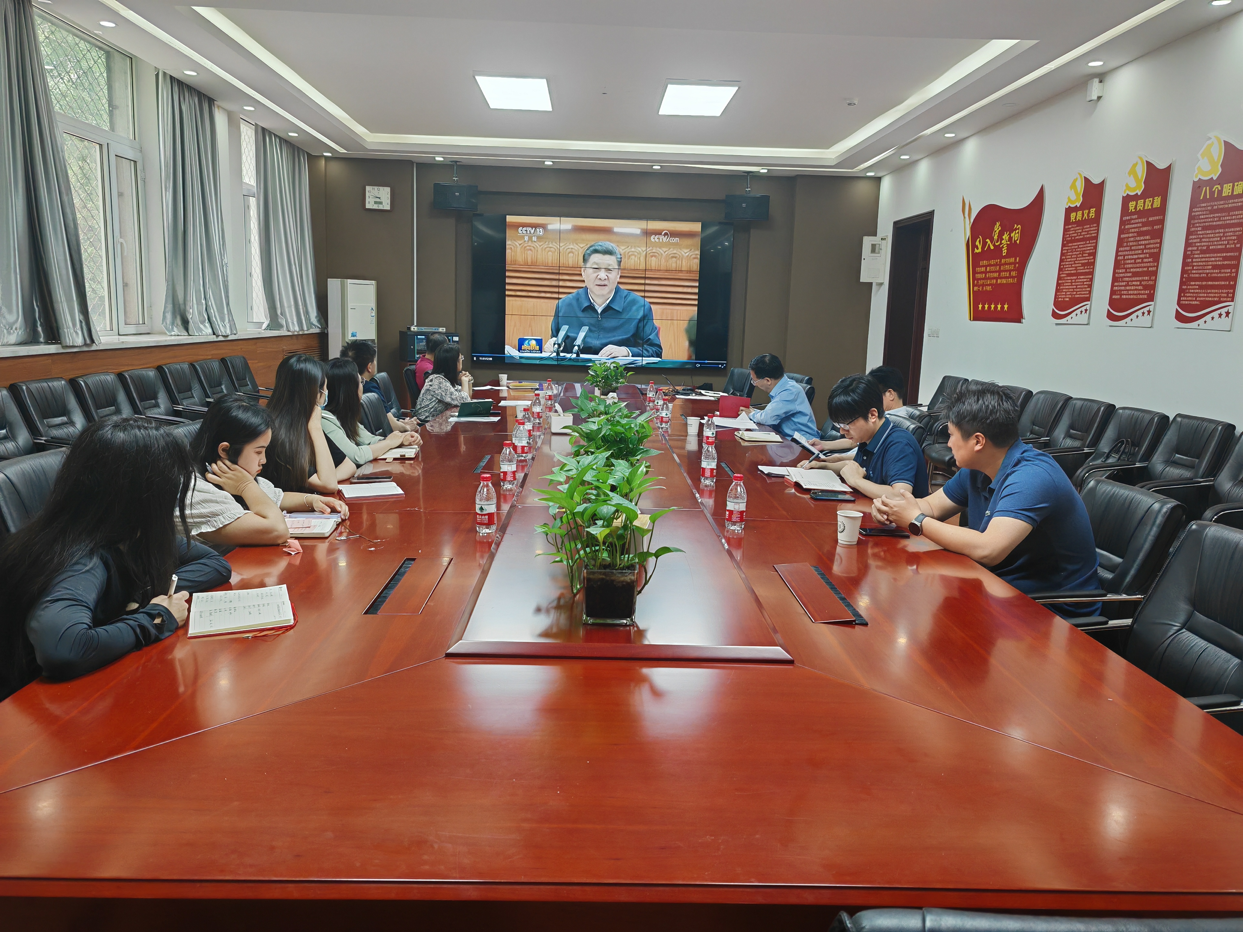 会上,参会人员集体观看《新闻联播》相关报道,学习习近平总书记在2019年3月18日学校思想政治理论课教师座谈会上的重要讲话和日前对思政课建设作出的重要指示。